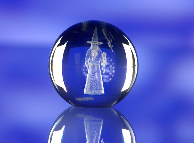 CRYSTAL GLASS SPHERE PAPERWEIGHT or AWARD TROPHY with 3D Laser Engraved Image & Logo in Centre
